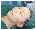 美白コースの中に水分のみで作り上げたマッサージゲルを使用したリラックスマッサージに加え、生きたビタミンCのイオン導入後はさらに同じビタミンCのパックをします。